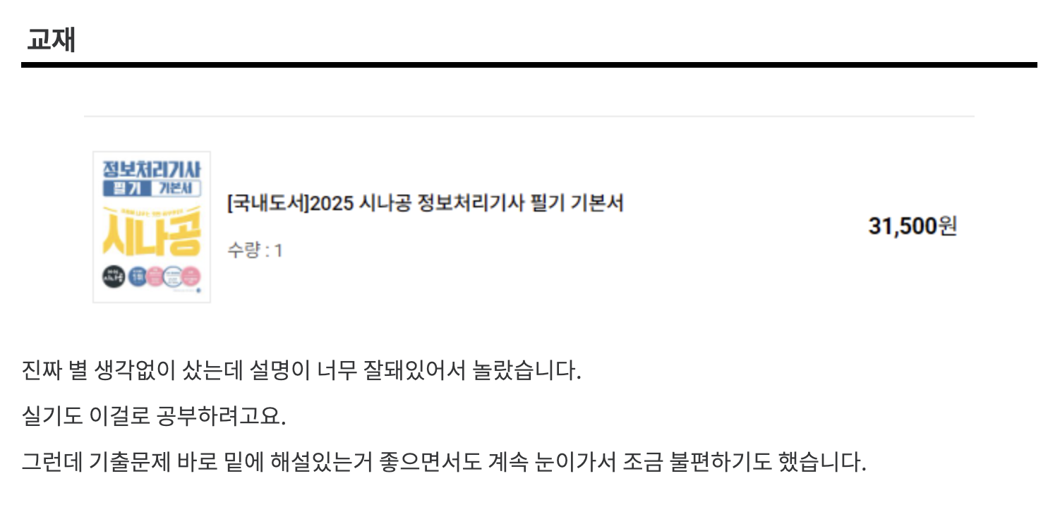 - 오탈자가 많음 : 검수가 미흡한지 오탈자가 많습니다. 대표적으로 위험, 위협 설명이 위험 설명으로 똑같이 써져있어 위협에 대해 아예 알 수없는 경우가 있었습니다. 문제 풀이에도 잘못된 부분이 종종 있습니다. 26년 버전에는 검수 잘 해주시겠죠?