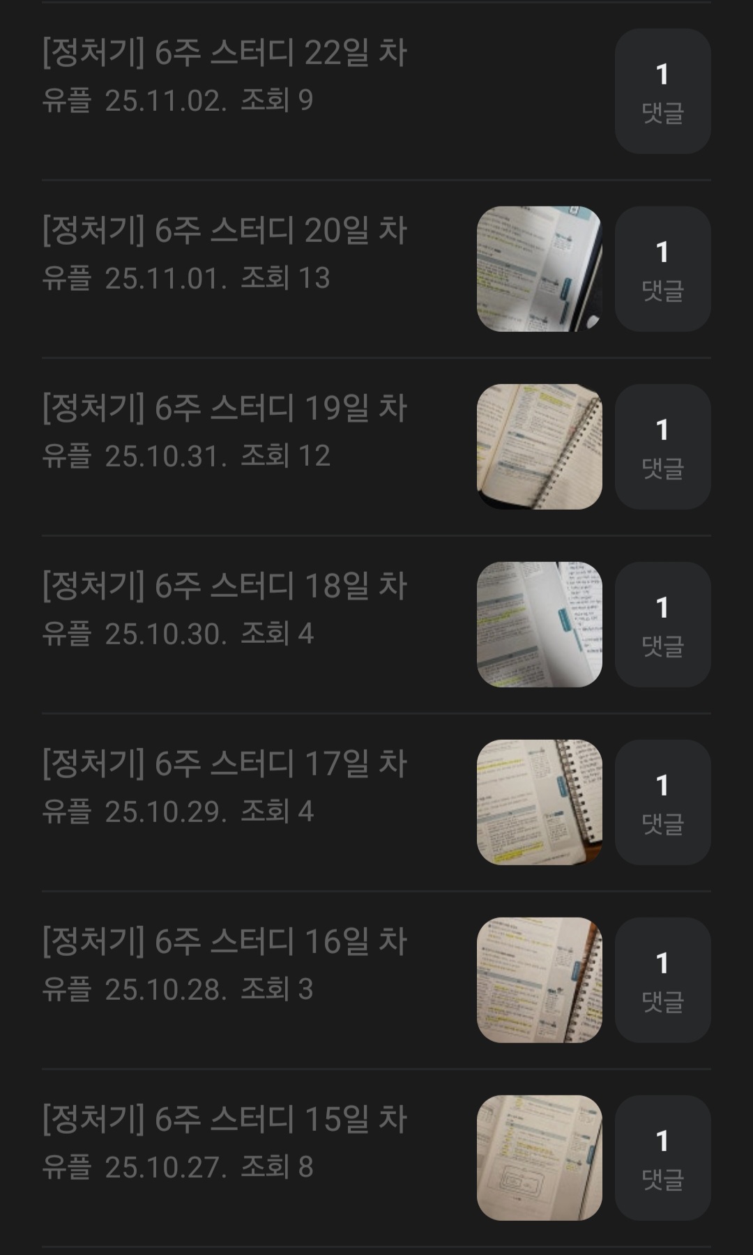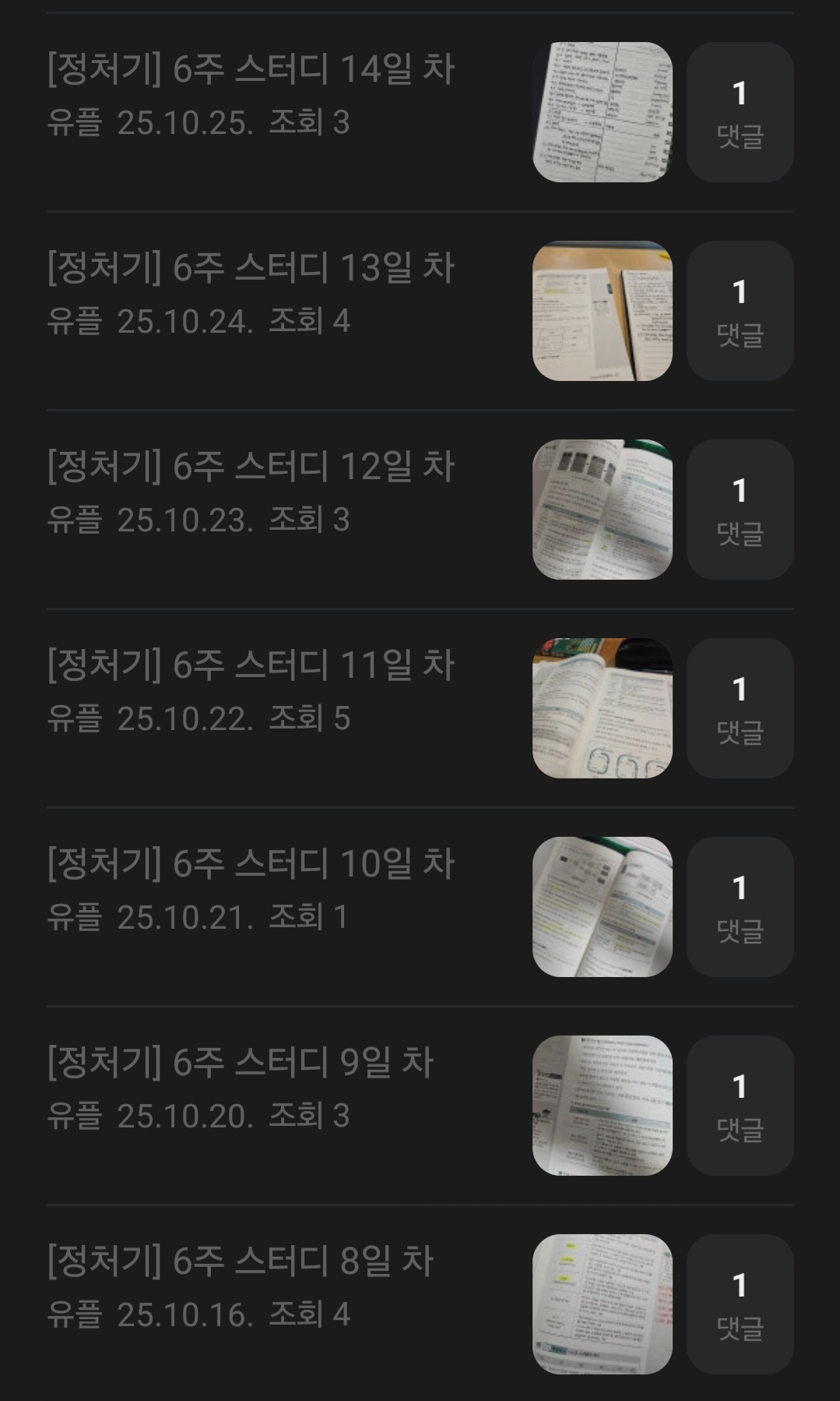 - 카페가 잘 되어있음 : 스터디 페이지가 있어서 매일 공부한 걸 인증할 수 있습니다. 인증하면 매일 선생님들이 격려 댓글(매크로가 아니고 진짜 내용을 읽고)을 써주십니다. 매일 인증 글을 쓰는걸 루틴화해서 쌓아가다보니 동기부여가 되고 좋았습니다. 솔직히 카페가 아니었으면 떨어졌을것 같습니다.