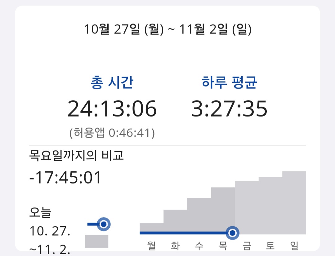 10/06 ~ 11/08 약 한 달 중에 25일 공부했습니다.